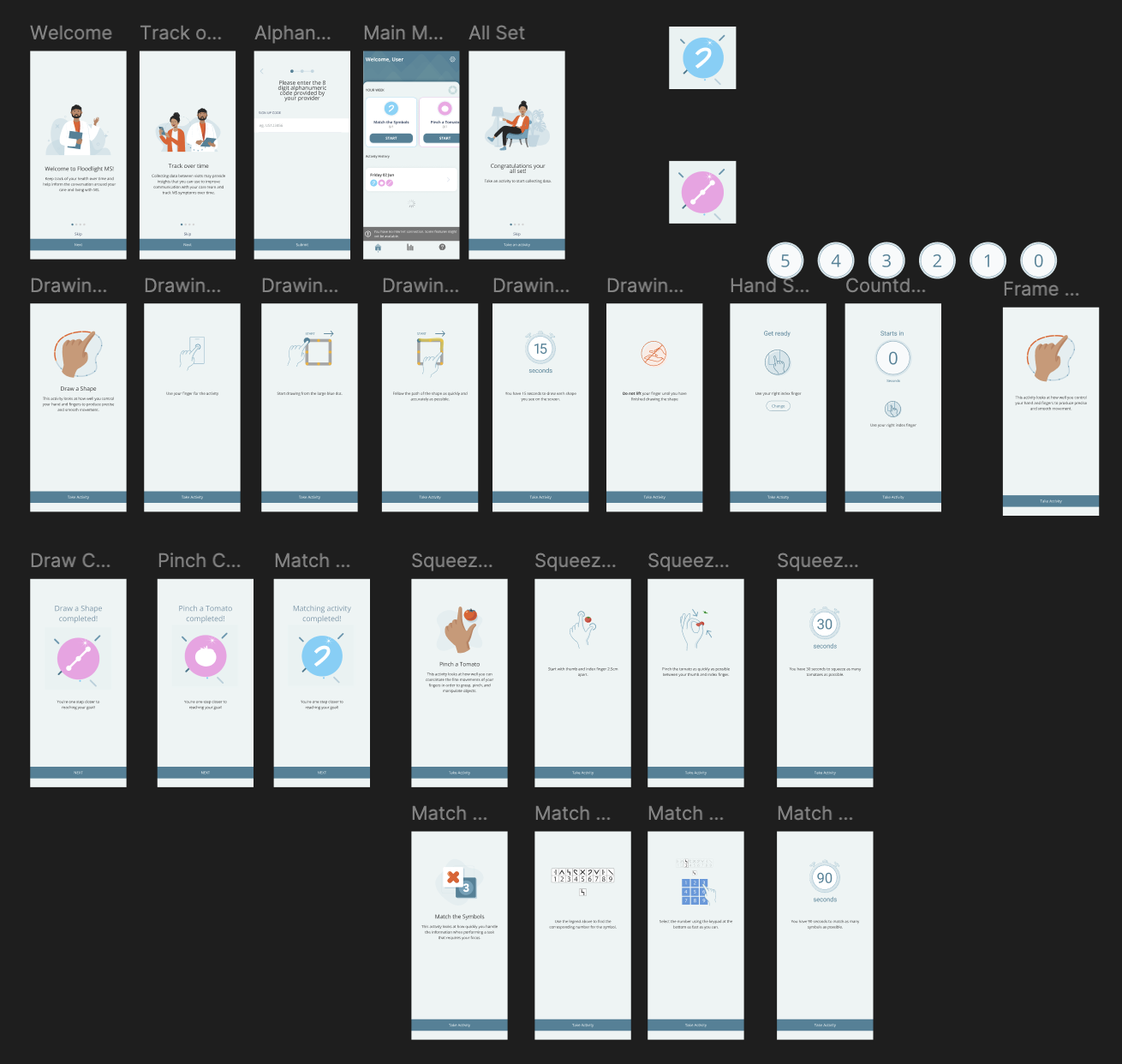 Our team at Outpost 4 was engaged to create a suite of mobile applications centered around both clinical-style activity interactions and experimental gamified variations. The engagement began with the delivery of a Control App, which became the baseline experience used to validate patterns for future products.