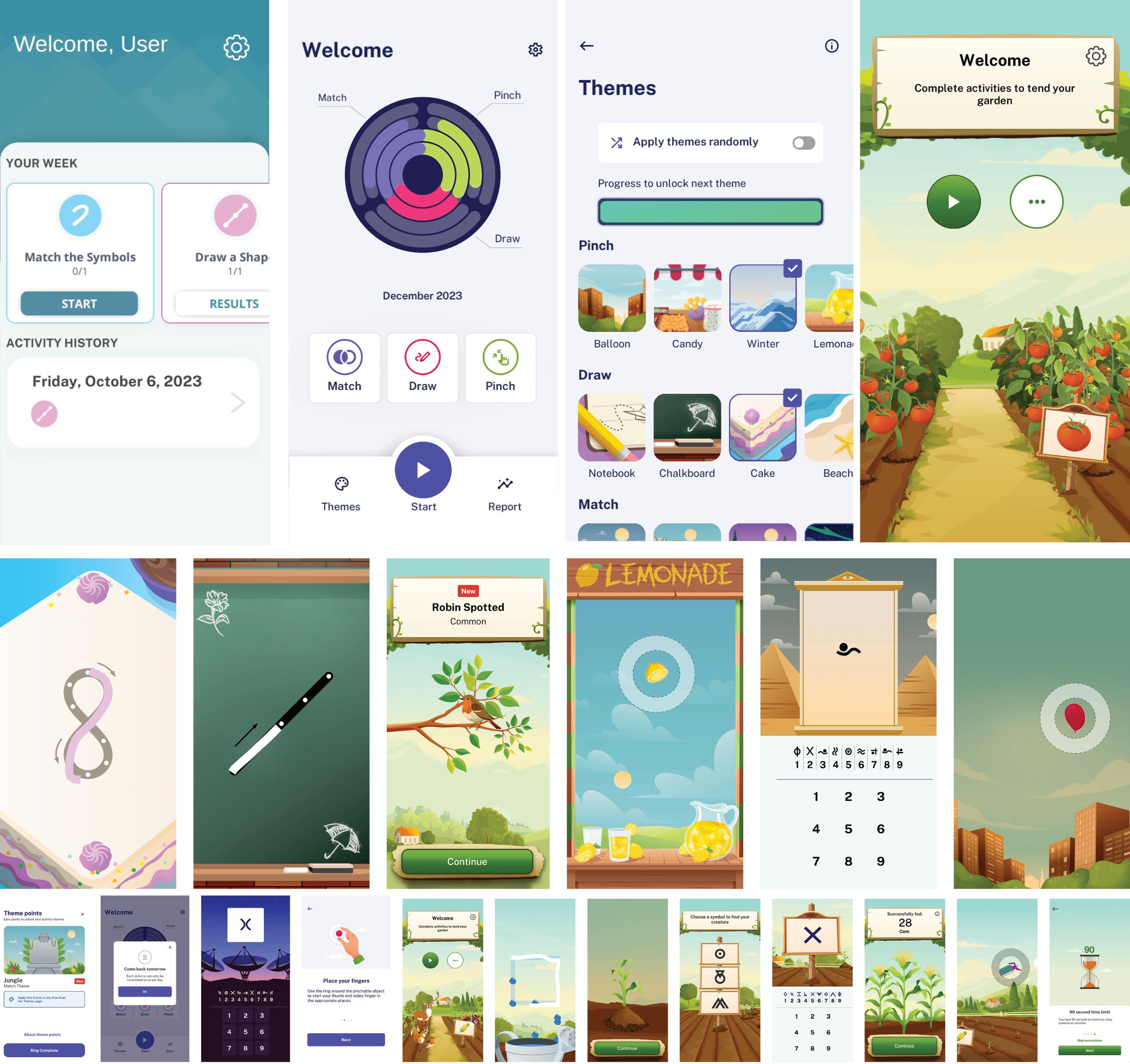 Multiple variants of Pinch, Draw, Match including varied theming